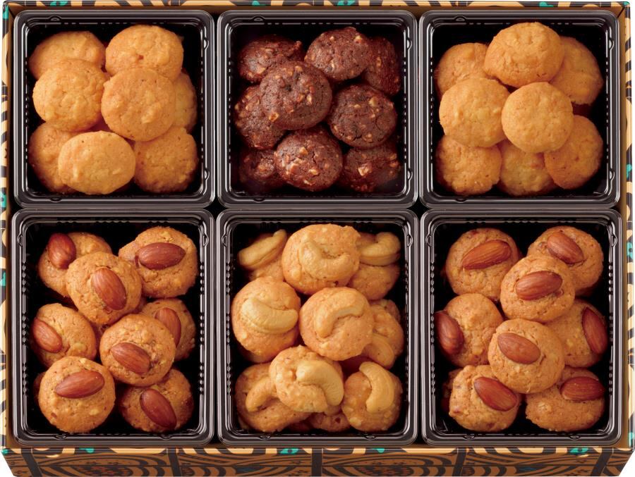 商品内容:アーモンド130g、カシューナッツ65g、マカダミアナッツ80g、チョコレートチップ40g