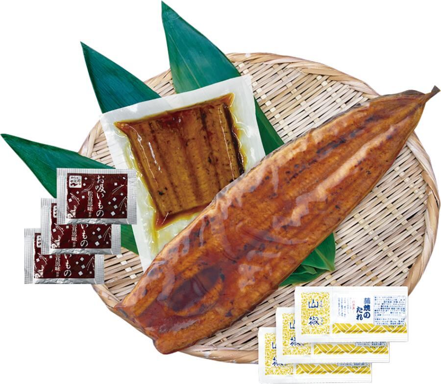 商品内容:うなぎの蒲焼き(200g)、うなぎの蒲焼きカット(80g)、タレx3、永谷園お吸い物(2.3g)x3