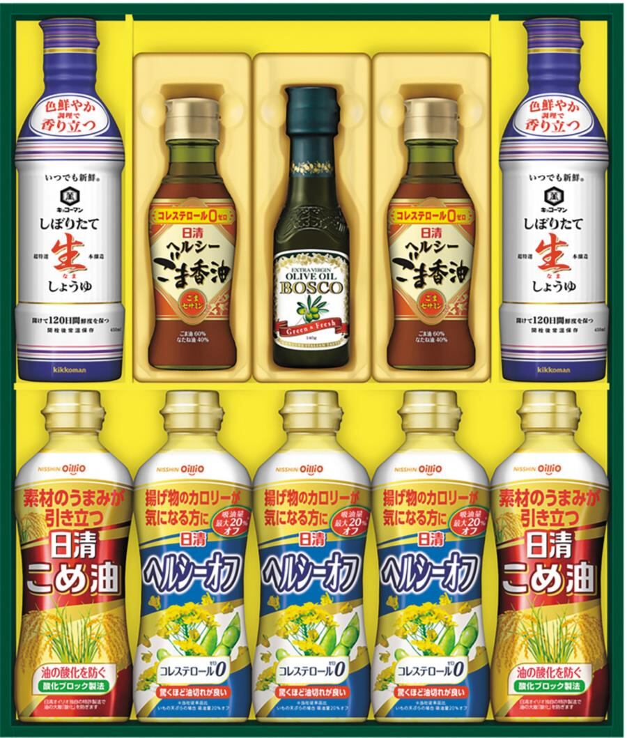日清バラエティオイル&キッコーマンしぼりたて生しょうゆギフト NK-50