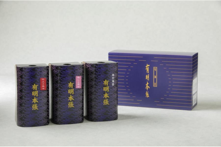 商品内容:味付海苔(8切5枚×3)、梅しそ風味(8切5枚×3)、明太子風味(8切5枚×3)