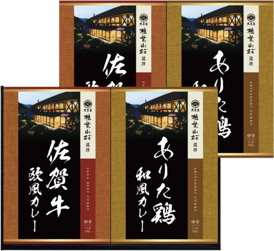 商品内容:佐賀牛欧風カレー中辛180g×2、ありた鶏和風だしカレー中辛180g×2