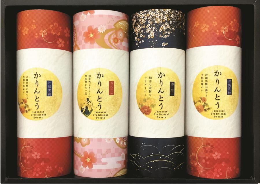 商品内容:沖縄黒糖かりんとう 50g×2袋、きなこかりんとう 50g×1袋、珈琲かりんとう 50g×1袋