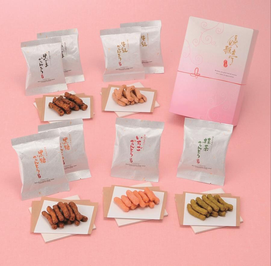 商品内容:黒糖かりんとう10g×2、黒胡麻かりんとう10g×2、牛乳かりんとう10g×2、抹茶かりんとう10g×1、いちごかりんとう10g×1
