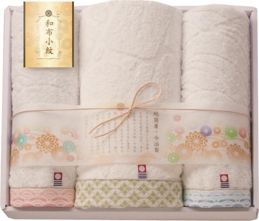 和布小紋 今治タオルセット バスタオル1P&フェイスタオル2P WFK-030-GR
