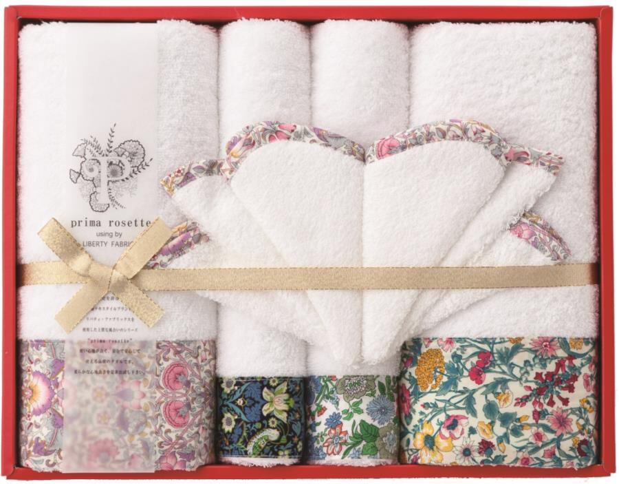 商品内容:バスタオル(60×120cm)×2、フェイスタオル(34×80cm)×2、ミニハンカチ(25×25cm)×2