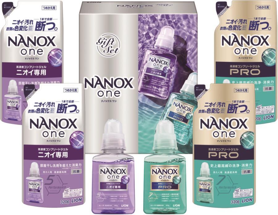 商品内容:NANOX one PRO本体380g×1、NANOX one PRO詰替320g×2、NANOX one PROニオイ専用本体380g×1、NANOX one PROニオイ専用詰替320g×2
