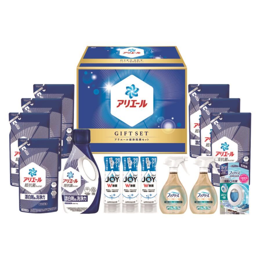 商品内容:アリエールジェル本体720g×1、アリエールジェル詰替405g×7、除菌ジョイコンパクト逆さボトル290ml×3、ファブリーズW除菌ランドリーの香り本体370ml×1、ファブリーズW消臭玄関用フレンチリネン&ソープ7ml×1