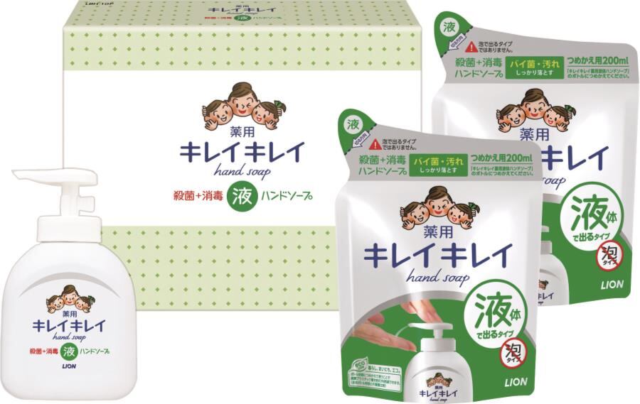 商品内容:キレイキレイ薬用液体ハンドソープ本体250ml×1、キレイキレイ薬用液体ハンソープ詰替200ml×2