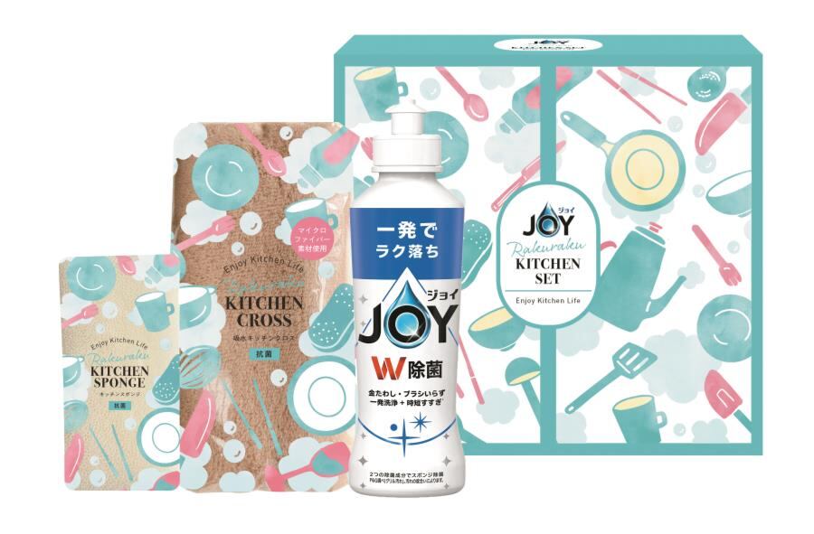 商品内容:除菌ジョイコンパクト170ml×1、らくらくキッチンスポンジ(ポリウレタン)×1、らくらく吸水キッチンクロス×1