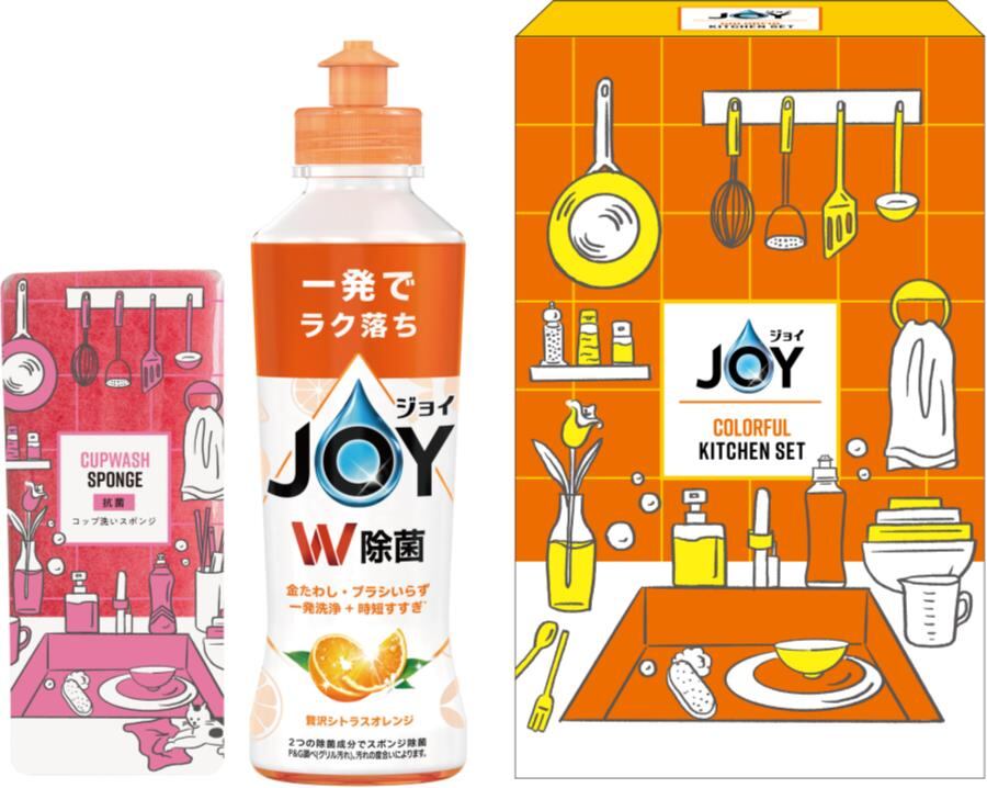商品内容:除菌ジョイコンパクトオレンジの香り170ml×1、コップ洗いスポンジ×1(材質:ナイロン〔ソフトタイプ不織布〕、ポリウレタン)