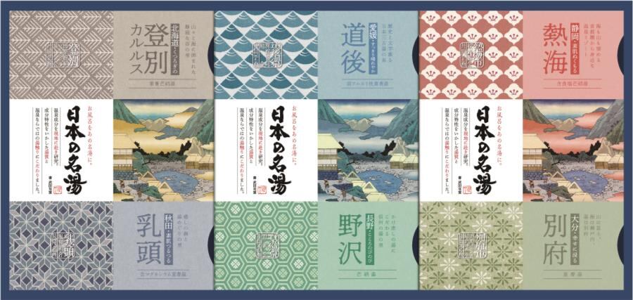 商品内容:入浴剤30g×16(登別カルルス×3、乳頭×3、別府×3、熱海×3、道後×2、野沢×2)