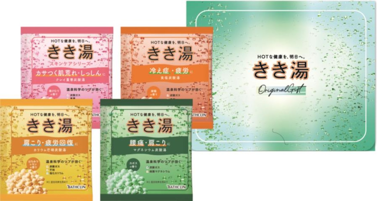 商品内容:きき湯30g×4(マグネシウム炭酸湯×1、カリウム芒硝炭酸湯×1、クレイ重曹炭酸湯×1、食塩炭酸湯×1)