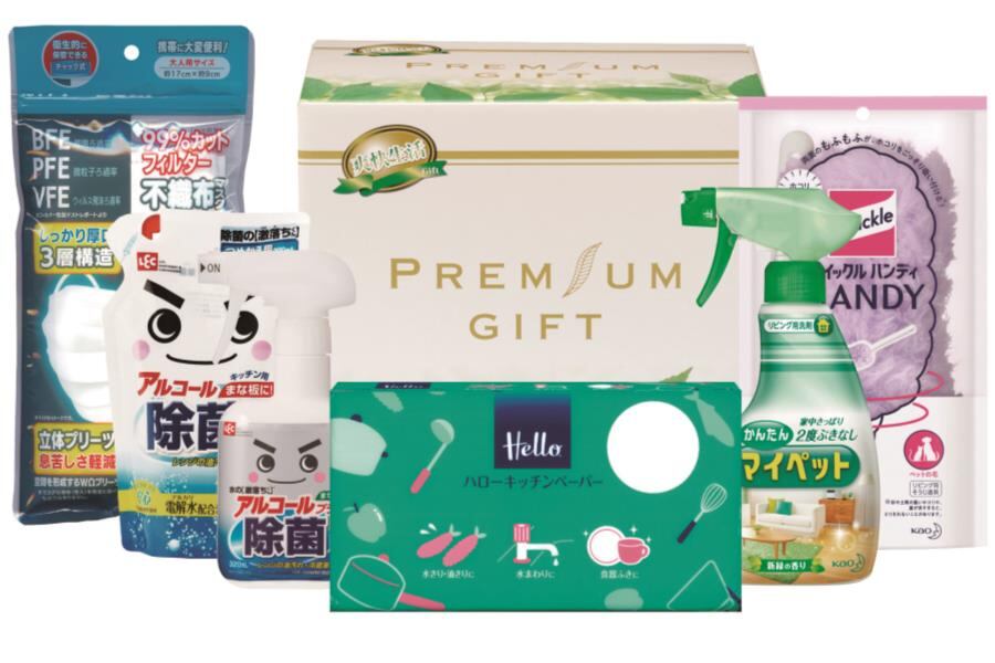 商品内容:花王 かんたんマイペット400ml (本体)、花王 クイックルワイパーハンディ、レック 除菌の激落ちくん320ml (本体)、レック 除菌の激落ちくん300ml (詰替)、不織布マスク大人用12枚、ハローキッチンペーパー70枚 ×各1