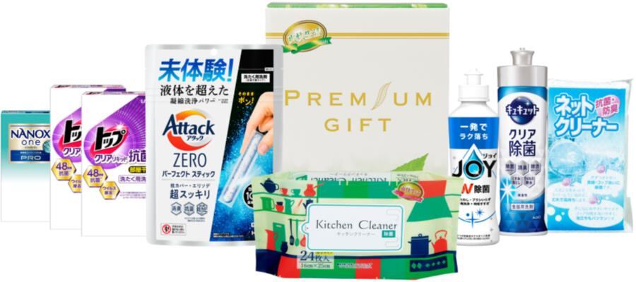 商品内容:花王 アタックZEROパーフェクトスティック7本入×1、ライオン トップクリアリキッド抗菌2P×2、ライオン NANOXonePRO2P×1、花王 キュキュットクリア除菌220ml×1、P&G 除菌ジョイコンパクト170ml×1、キッチンクリーナー24枚×1、ネットクリーナー1P×1