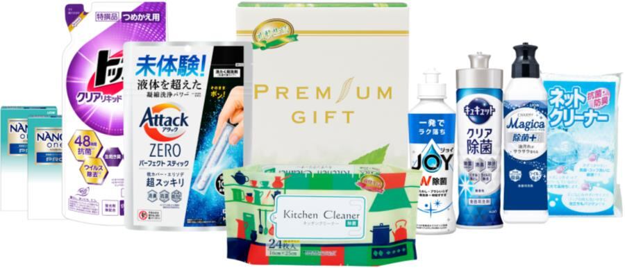 商品内容:花王 アタックZEROパーフェクトスティック7本入×1、ライオン トップクリアリキッド抗菌350g詰替×1、ライオン NANOXonePRO2P ×2、花王 キュキュットクリア除菌220ml×1、P&G 除菌ジョイコンパクト170ml×1、ライオン Magica除菌プラス220ml×1、キッチンクリーナー24枚×1、ネットクリーナー1P×1