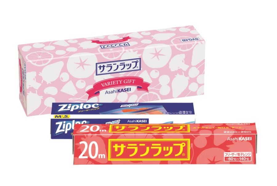 商品内容:サランラップ(22cm×20m)×1、ジップロックフリザーバッグ(M5枚入)×1
